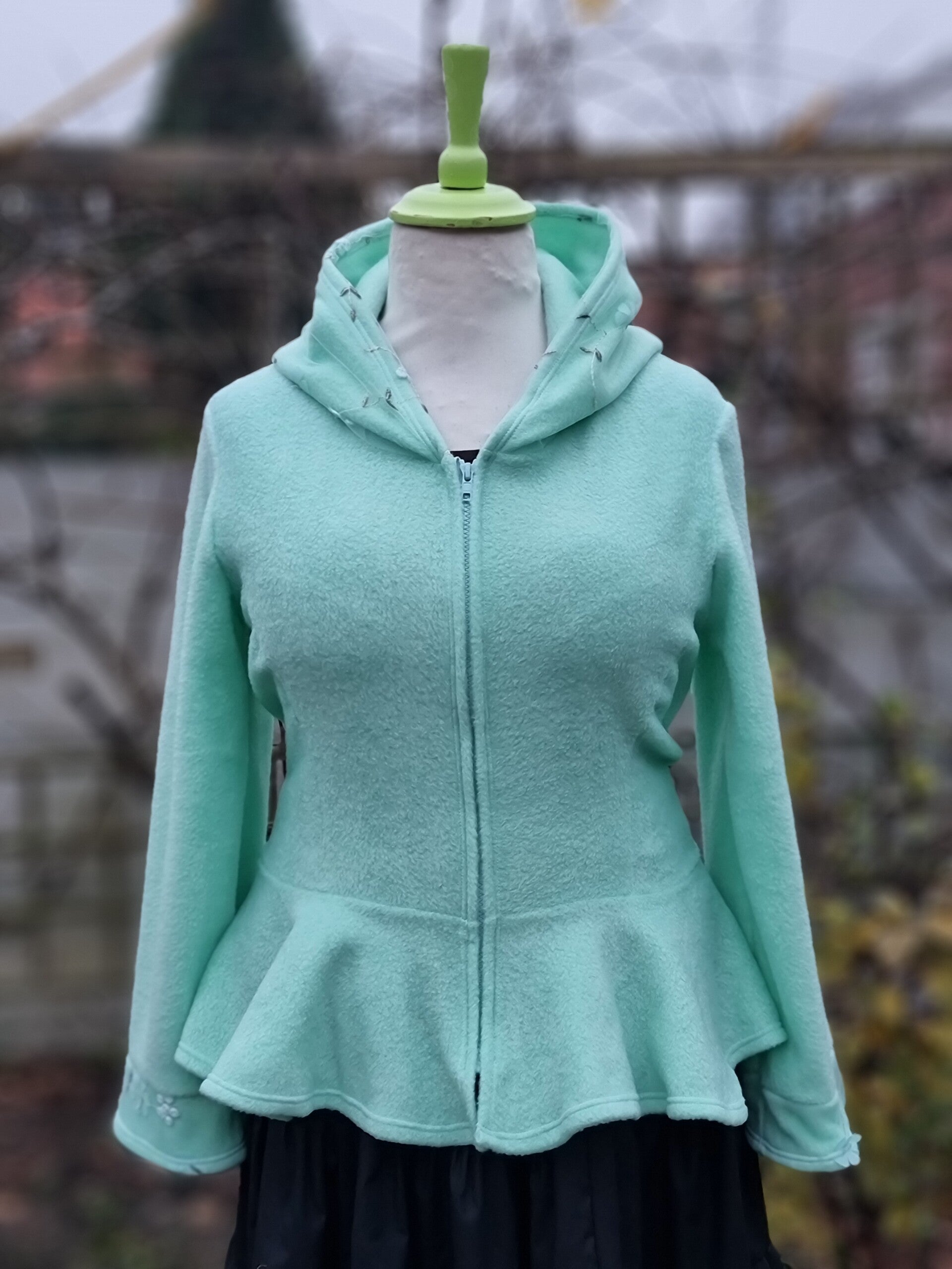 Een heerlijk zachte fleece jas met grote capuchon, accenten aan de mouwen en onderkant en opgestikte zakken.