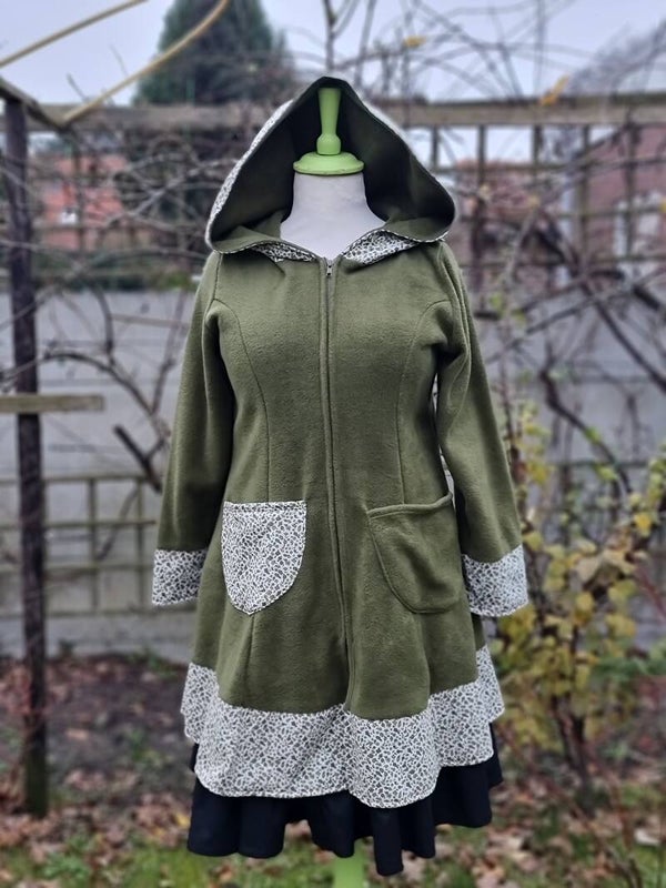 Een heerlijk zachte fleece jas met grote capuchon, accenten aan de mouwen en onderkant en opgestikte zakken.