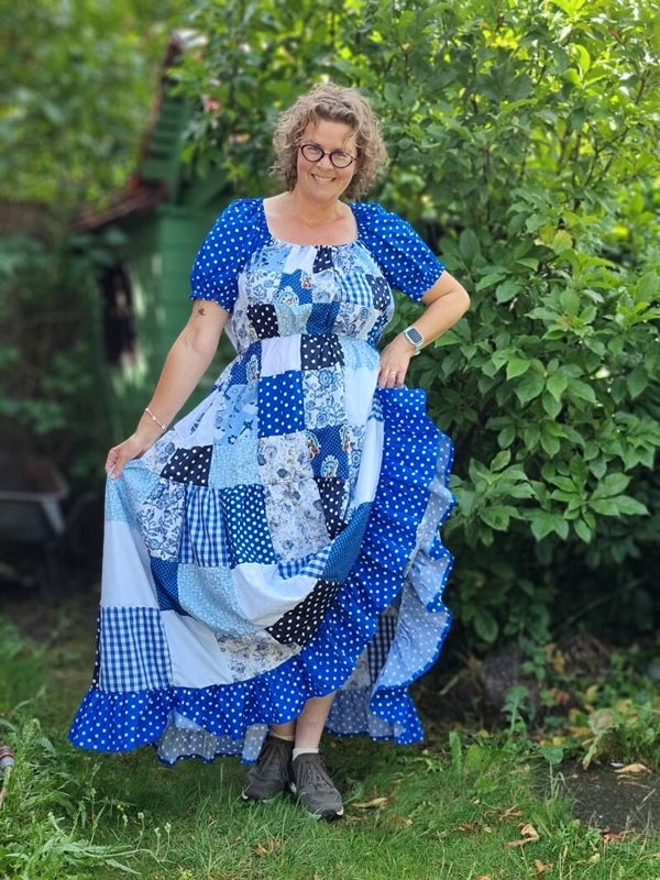 Jurk Freya patchwork blauw maat L t/m 3XL