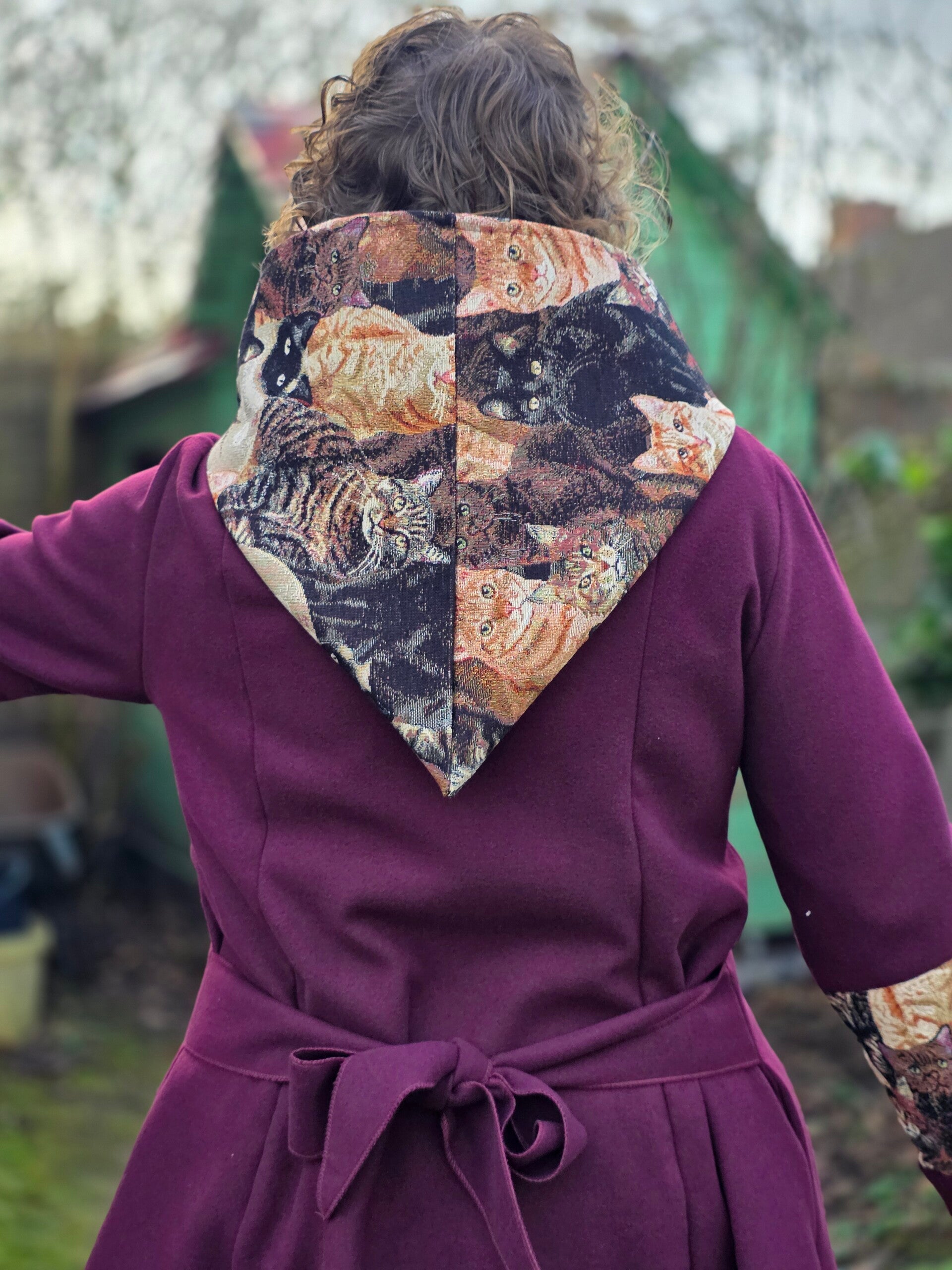 Jas Fairy Coat wijnrood met katten maat M/L/XL